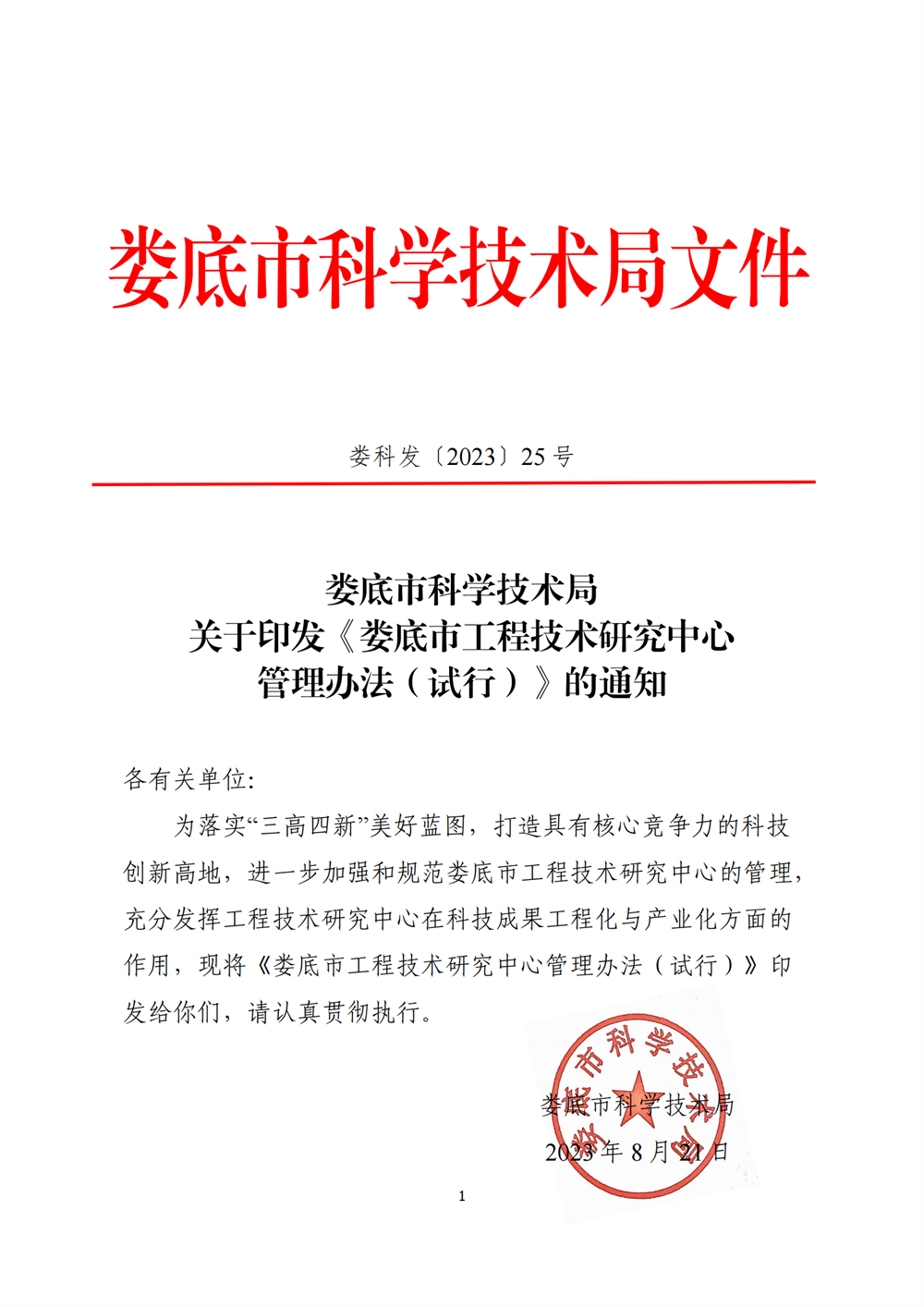 婁底市科學技術(shù)局關于印發(fā)《婁底市工程技術(shù)研究中心管理辦法(試行)》的通知