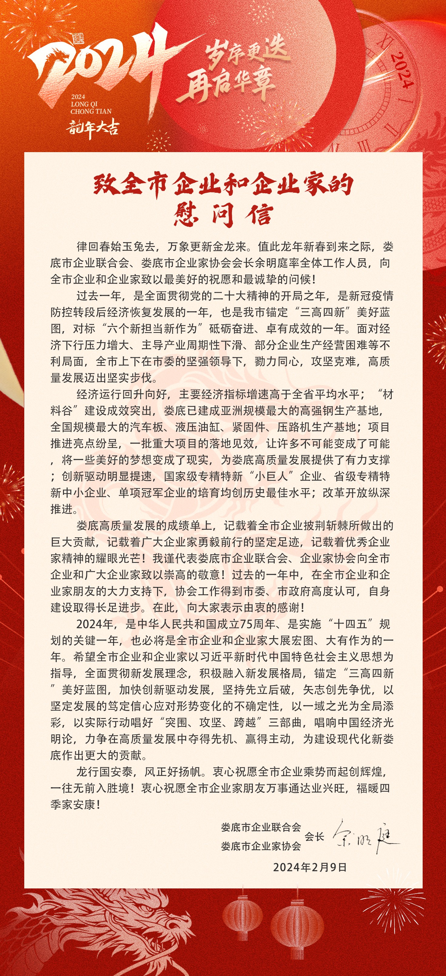 致全市企業(yè)和企業(yè)家的慰問(wèn)信
