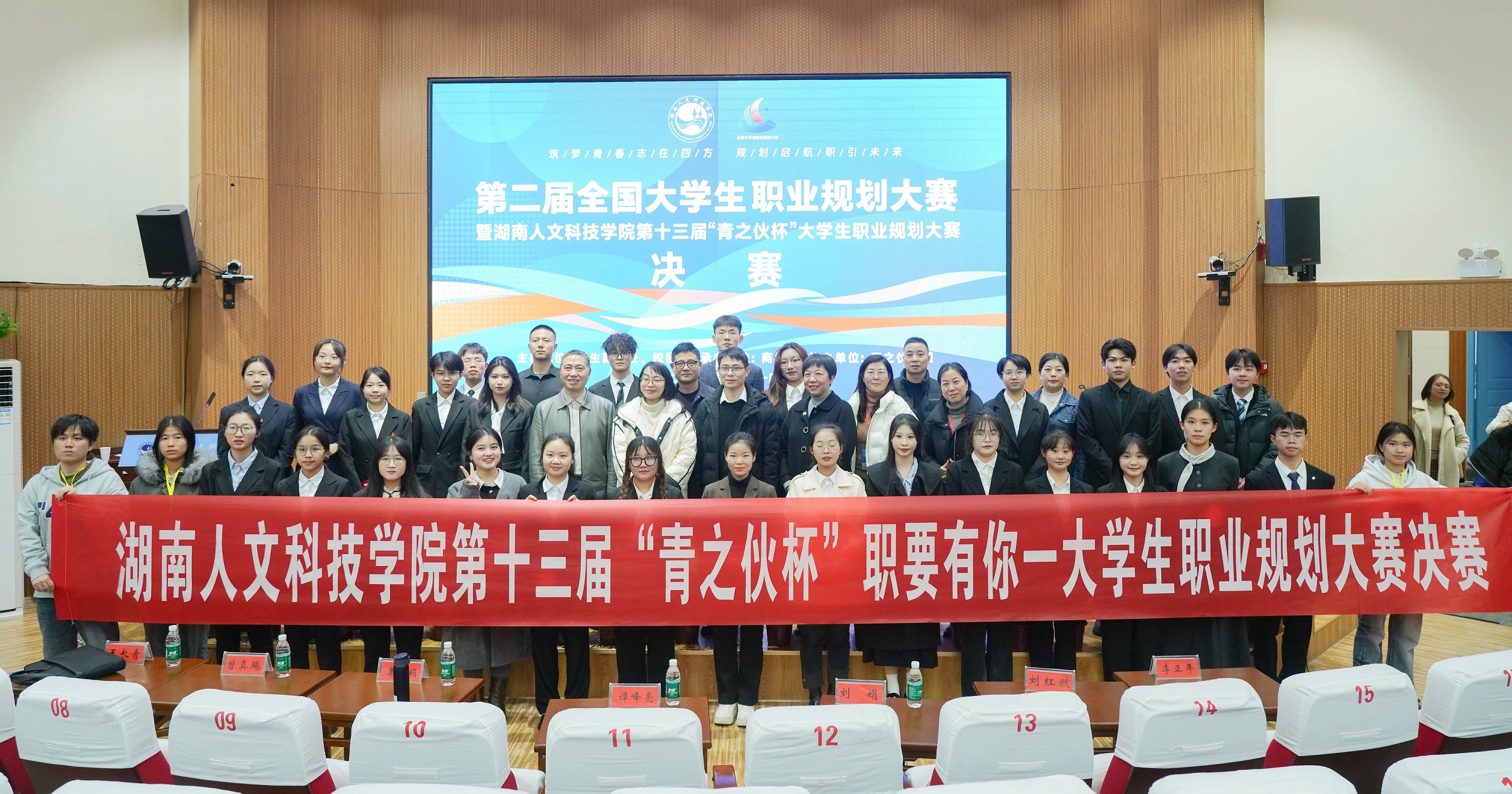 為貫徹落實黨中央、國務院關(guān)于高校畢業(yè)生就業(yè)工作的決策部署,加強高校就業(yè)指導,增強大學生生涯規(guī)劃意識,促進高校畢業(yè)生高質(zhì)量充分就業(yè)。12月10日,第二屆全國大學生職業(yè)規(guī)劃大賽暨湖南人文科技學院第十三屆“青之伙杯”職要有你——大學生職業(yè)規(guī)劃大賽在湖南人文科技學院匠成樓報告廳舉行。校黨委委員、副校長譚峰亮、婁底市人力資源和社會保障局就業(yè)服務中心創(chuàng)業(yè)服務部部長康杜娟、婁底市企業(yè)聯(lián)合會副秘書長兼校企合作宣傳部部長劉娟、創(chuàng)新創(chuàng)業(yè)指導中心黨支部書記曾真飚、招生就業(yè)處處長劉紅燃出席并頒獎,參加活動的還有利通磁電、市節(jié)能環(huán)保產(chǎn)業(yè)促進中心、湘輝智匯人力資源和洪申科技等企業(yè)負責人。